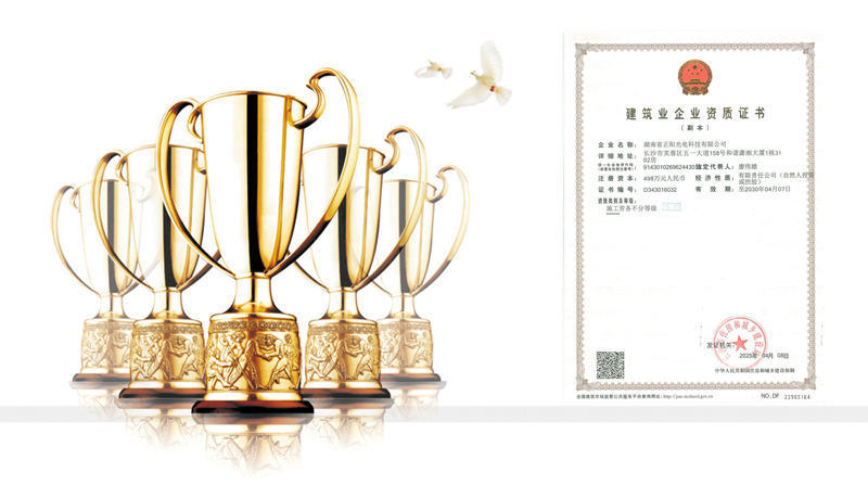 湖南省正陽光電科技有限公司是一家從事亮化工程及大型燈光藝術(shù)的設(shè)計、制作、安裝和維護(hù)于一體的專業(yè)化公司。公司資質(zhì)齊全、管理嚴(yán)謹(jǐn)、技術(shù)先進(jìn)、實(shí)力雄厚,取得了城市及道路照明工程專業(yè)承包壹級資質(zhì)、照明工程設(shè)計專項(xiàng)甲級資質(zhì)、機(jī)電工程施工總承包貳級資質(zhì)、施工勞務(wù)等資質(zhì)、國家高新技術(shù)企業(yè)、國家“重質(zhì)量·守誠信”示范企業(yè)。